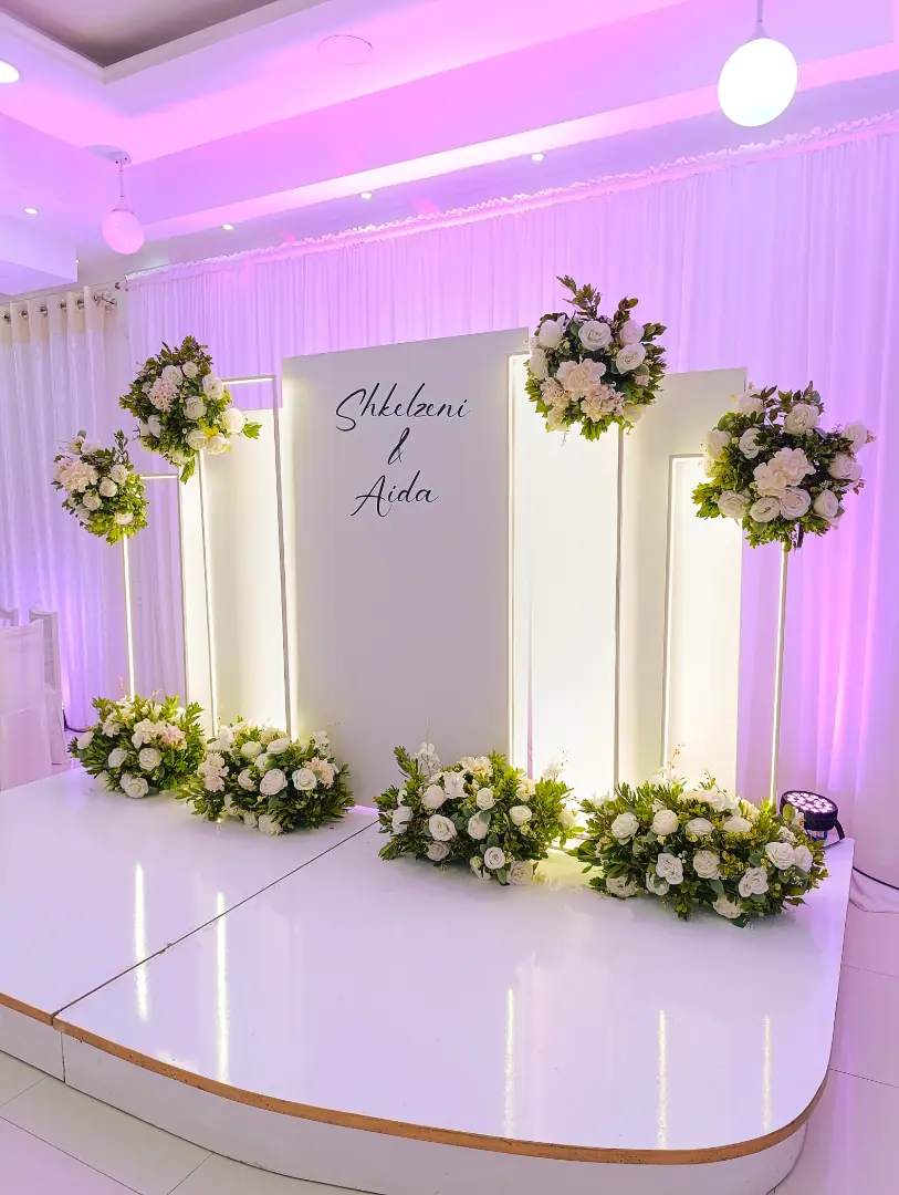 Ne ofrojmë dekore dasmash që shndërrojnë çdo hapësirë në një atmosferë të paharrueshme. Me stil dhe kreativitet, dekore dasmash që përshtaten me çdo temë, duke krijuar një përvojë të mrekullueshme për ju dhe të ftuarit tuaj.